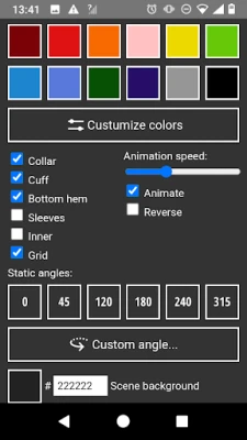Tilpasning er kernen i din designoplevelse. Dyk ned i et spektrum af farvemuligheder for at personalisere hver en detalje – fra krave og ærmer til manchetter, nederste kant og endda indersiden af dit tøj. Glem ikke det centrale printområde, der venter på dit kreative aftryk. Når dit design er perfektioneret, kan du nemt eksportere dine kreationer: generer en professionel PNG-mockup, tag et øjebliksbillede af din 3D-scene i knivskarp PNG-kvalitet, eller fang hele designprocessen i en dynamisk WEBM-video, perfekt til deling eller præsentation.