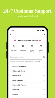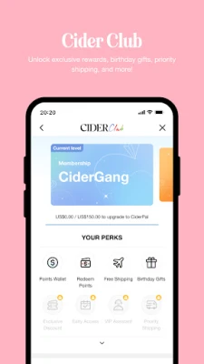 Når du træder ind i Cider-universet via appen, åbner der sig en række unikke fordele. Få et forspring med eksklusiv adgang til nye kollektioner, begrænsede tilbud og særlige kampagner – aktiver notifikationer, så du aldrig går glip af noget. Udforsk vores omfattende udvalg og find præcis det, du søger, ved at navigere efter stemning, aktuelle trends eller dine personlige favoritter, som du nemt kan gemme på din ønskeliste. Din shoppingoplevelse er strømlinet, sikker og bekvem, fra et væld af betalingsmuligheder til præcis sporing af din pakke lige til døren.
