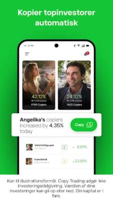 Invester smart med platformen, der revolutionerede handel. Bliv del af et globalt fællesskab, hvor du kan dele ideer og kopiere topinvestorer i realtid med CopyTrader™. Byg din diversificerede portefølje gnidningsfrit for en pålidelig investeringsoplevelse.