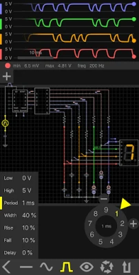 Forestil dig at bringe elektroniske kredsløb til live med et enkelt tryk. EveryCircuit forvandler abstrakt teori til fængslende visuelle oplevelser, der dykker ned i kredsløbets hjerte som ingen ligning kan. Se dynamiske animationer af spænding, strøm og ladningsbevægelser, der afslører den indre funktion i realtid. Med en intuitiv analog knap kan du øjeblikkeligt justere parametre, mens simuleringen kører, og observere kredsløbets umiddelbare respons. Du kan endda forme brugerdefinerede inputsignaler med et enkelt strøg af din finger, hvilket giver en interaktivitet og innovationsgrad, der overgår selv avancerede PC-simulationsværktøjer.