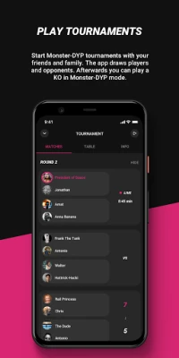 Men LET'S FOOS er meget mere end blot en lokationsguide; det er din portal til spændende turneringer. Organiser nemt dine egne kampe, eller deltag i eksisterende ved blot at scanne en QR-kode. Oplev den populære og socialt inkluderende Monster-DYP-spilleform, der garanterer en dynamisk oplevelse for alle. Denne begyndervenlige tilstand trækker nye partnere og modstandere i hver runde og sikrer altid et balanceret niveau mellem holdene. Spændingen fortsætter med elimineringsrunder, hvor dine partnere skifter for hver kamp, hvilket holder spillet frisk og uforudsigeligt.