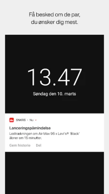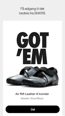 SNKRS App er din portal til at sikre dig adgang til begrænsede udgivelser og endeløse kombinationer af dine foretrukne styles fra Nike og Jordan Brand. Vær på forkant med de mest eftertragtede streetwear-trends og de seneste sneaker-lanceringer. Hold dig ajour med kommende drops, lodtrækninger og får prioriteret adgang til at købe de mest populære varer – en særlig fordel for udvalgte medlemmer. Med påmindelser via SNKRS App går du aldrig glip af chancen for at erhverve dig netop det par eller den beklædningsgenstand, du drømmer om. Benyt også SNKRS Pass til at bestille direkte i appen og afhente dit køb hos en udvalgt forhandler.