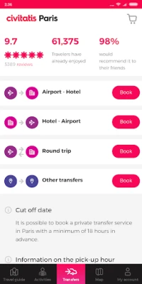 For en problemfri ankomst garanterer vores lufthavnstransferservice en komfortabel og økonomisk rejse direkte til dit hotel, hvor vores chauffører venter med et personligt skilt. Endelig, lad vores avancerede søgemaskine hjælpe dig med at finde den ideelle indkvartering – tusindvis af hoteller, serviced apartments og hostels, alle med prisgaranti, er lige ved hånden. Gør din Paris-rejse komplet og ubesværet med denne komplette pakke af information og services.