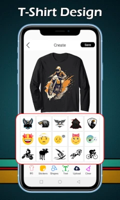 T-shirt design tilbyder et omfattende bibliotek af værktøjer og ressourcer, der gør designprocessen både sjov og intuitiv. Dyk ned i et væld af kategoriserede klistermærker, grafiske elementer og former, som kan kombineres på utallige måder. Leg med et rigt udvalg af farver og teksturer for at give dine designs dybde og karakter. For den ultimative personlige touch giver appen dig også mulighed for at importere billeder direkte fra dit smartphones galleri, så du kan integrere dine egne fotos og minder i dit design.