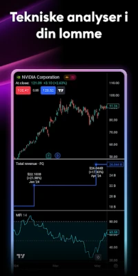 TradingView gør teknisk analyse let for begyndere og kraftfuld for eksperter. Få adgang til værktøjer for at publicere og se handelsidéer. Med realtids tilbud og diagrammer er du opdateret overalt, altid.